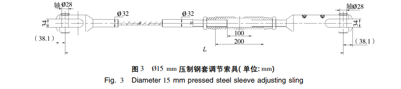 mm壓制鋼套調(diào)節(jié)索具,為了滿足吊裝要求,材質(zhì)選用不銹鋼,繩體選用不銹鋼鋼絞線,在減小繩徑的同時(shí)滿足了索具的整體強(qiáng)度。索具形式如圖3所示。