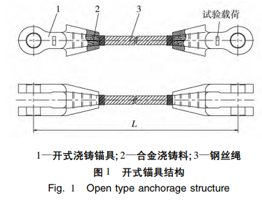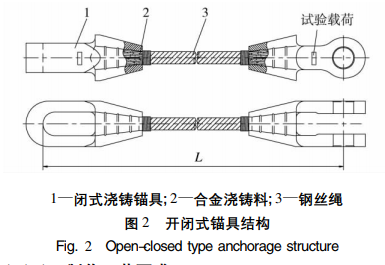 錨具的形式分為2種:一種是開式錨具即兩端均為開式澆鑄錨具,如圖1所示;另一種為開閉式錨具,即一端為開式澆鑄錨具,另一端為閉式澆鑄錨具,如圖2所示。