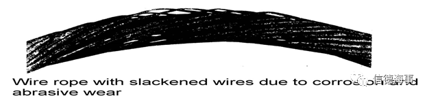 5)Wire rope with slackened wires due to corrosion and abrasive wear 因銹蝕與磨損導致的鋼絲松脫